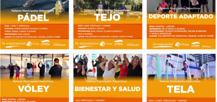 VECINOSDELAPUNTA.NET / 13 DE MARZOLa Municipalidad de La Punta anunció la apertura de las inscripciones para los Talleres Deportivos Municipales 2026, que se desarrollarán durante todo el año en el Polideportivo Manuel García Ferré....