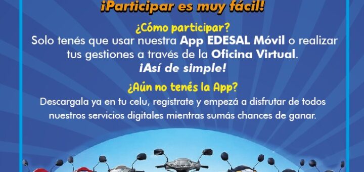 La empresa distribuidora de energía EDESAL lanzó una nueva propuesta para incentivar el uso de sus canales digitales: el sorteo de ocho motos entre los usuarios que realicen gestiones online durante el mes. La...