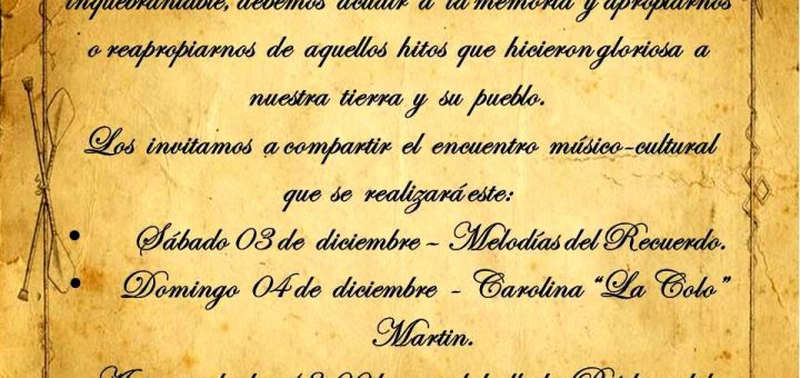 Este fin de semana, continuará el encuentro músico-cultural realzando los valores de nuestra puntanidad, y como un atractivo más para el turismo. En esta ocasión actuarán Melodías del recuerdo, el sábado 03 de diciembre, el...