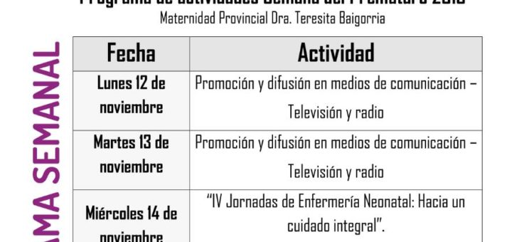 La Maternidad provincial “Dra. Teresita Baigorria” realizó el lanzamiento oficial de la Semana del Prematuro que Unicef celebra todos los años desde el 12 al 16 de noviembre, para concientizar a la comunidad sobre...