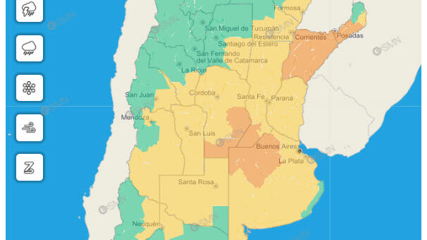 El área será afectada por tormentas, pudiendo ser algunas fuertes, acompañadas de intensas ráfagas, fuerte actividad eléctrica, ocasional caída de granizo y abundante caída de agua en cortos períodos. Se prevén valores de precipitación...
