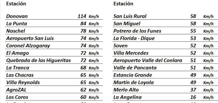 VECINOSDELAPUNTA.NET / 16 DE NOVIEMBRELas ráfagas de viento fueron fuertes en varios puntos de la provincia, registrando a Dónovan con ráfagas que superaron los 114 km/h.La Punta fue la segunda localidad en el registro...