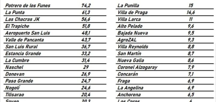 VECINOSDELAPUNTA.NET / 20 DE DICIEMBRE Según el registro de lluvias proporcionado por la Red de Estaciones Meteorológicas provinciales, Potrero de los Funes fue la localidad más beneficiada por las recientes precipitaciones, con 74,2 mm....