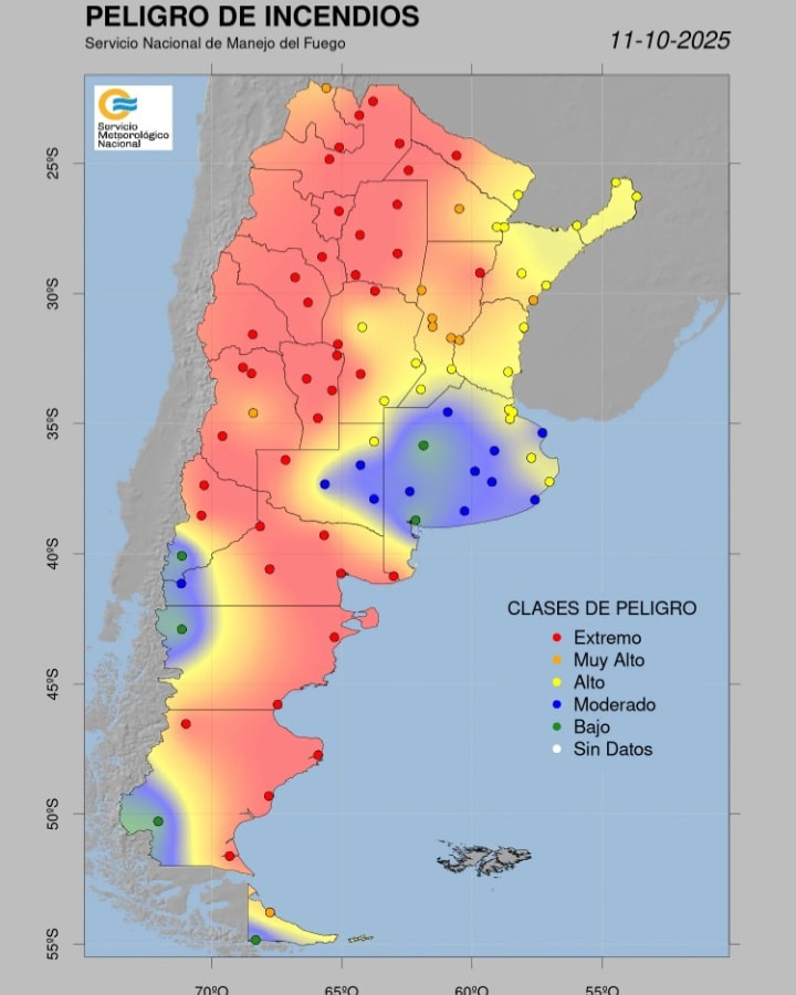 Hoy y mañana 12 de octubre en nuestra provincia existen altas condiciones de peligro de incendios.