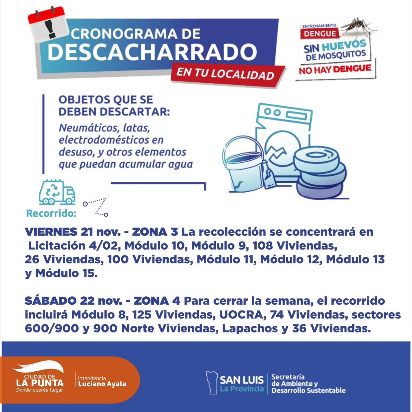 Se puede dejar en frente de las viviendas elementos en desuso que pueda acumular agua (neumáticos, latas, botellas, electrodomésticos viejos, etc.) solo el día que corresponda a al sector o zona.