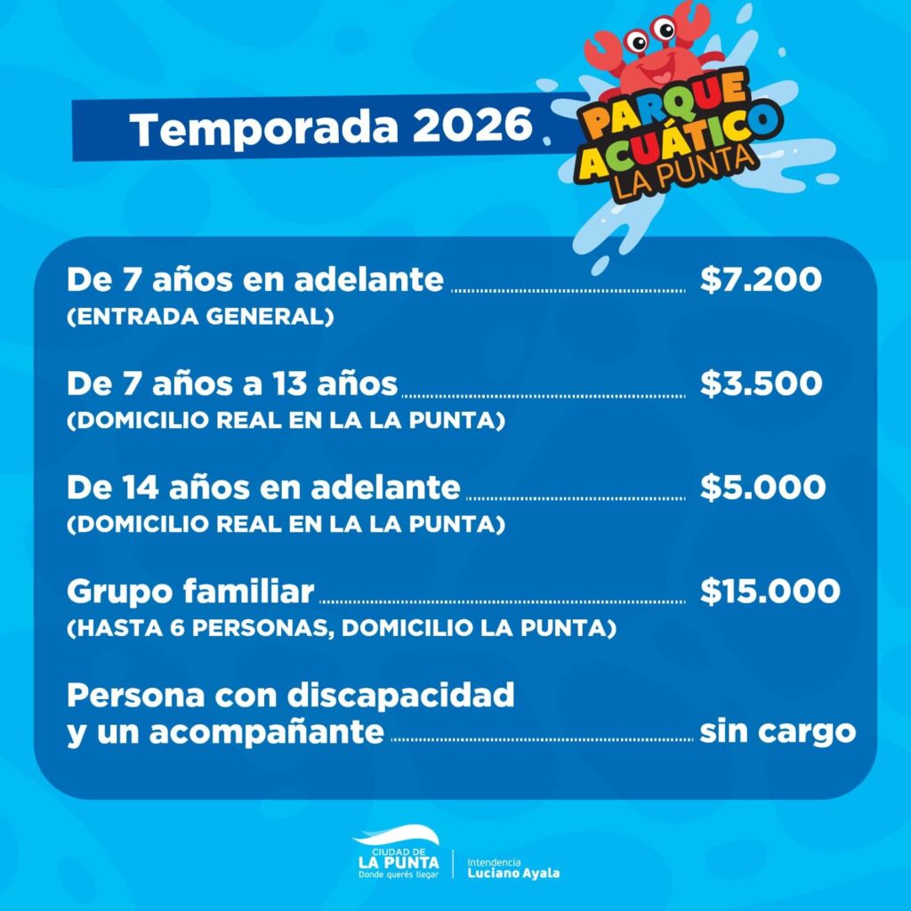 Para la temporada 2026, los valores actualizados del Parque Acuático de nuestra ciudad son los siguientes: