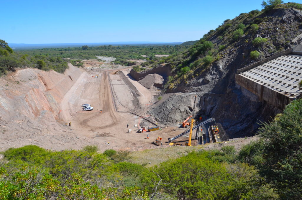 El jefe del Programa Infraestructura Hídrica, Fernando Yanzón, señaló: “Actualmente, se realizan tareas de hormigonado de la rápida escalonada, la cual es la encargada de disipar la energía para evitar erosiones sobre la estructura del canal a ejecutar. Además, no solo se trabaja sobre la estructura de lo que es el vertedero, sino también de todas las partes correspondientes a las laderas laterales. Esta obra se va a ejecutar netamente con hormigón.