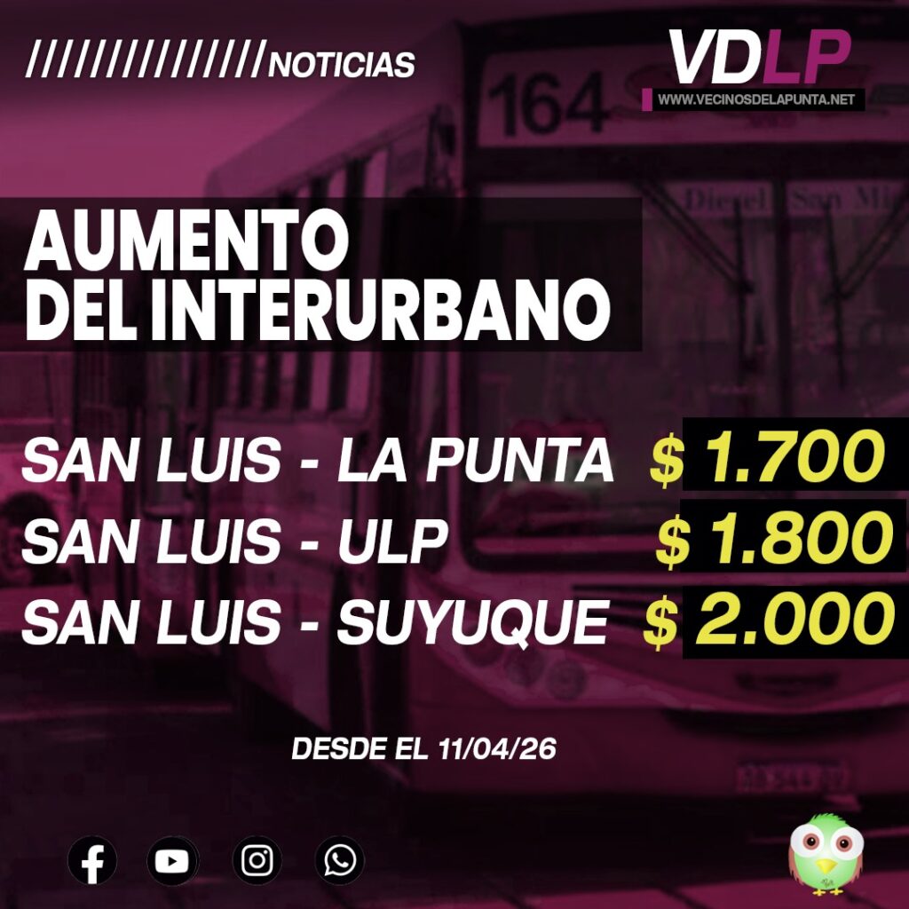 Desde el sábado 11 de abril rigen nuevas tarifas en el transporte interurbano de San Luis