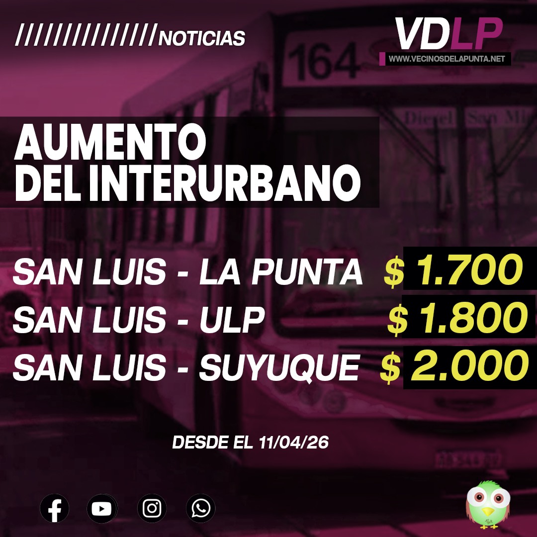 Desde el sábado 11 de abril rigen nuevas tarifas en el transporte interurbano de San Luis