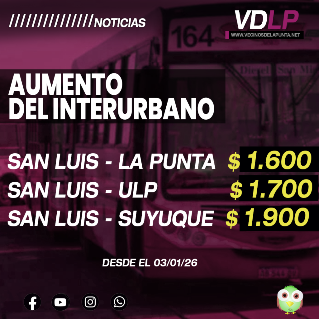 Para los corredores de la ciudad de La Punta los nuevos valores serán: