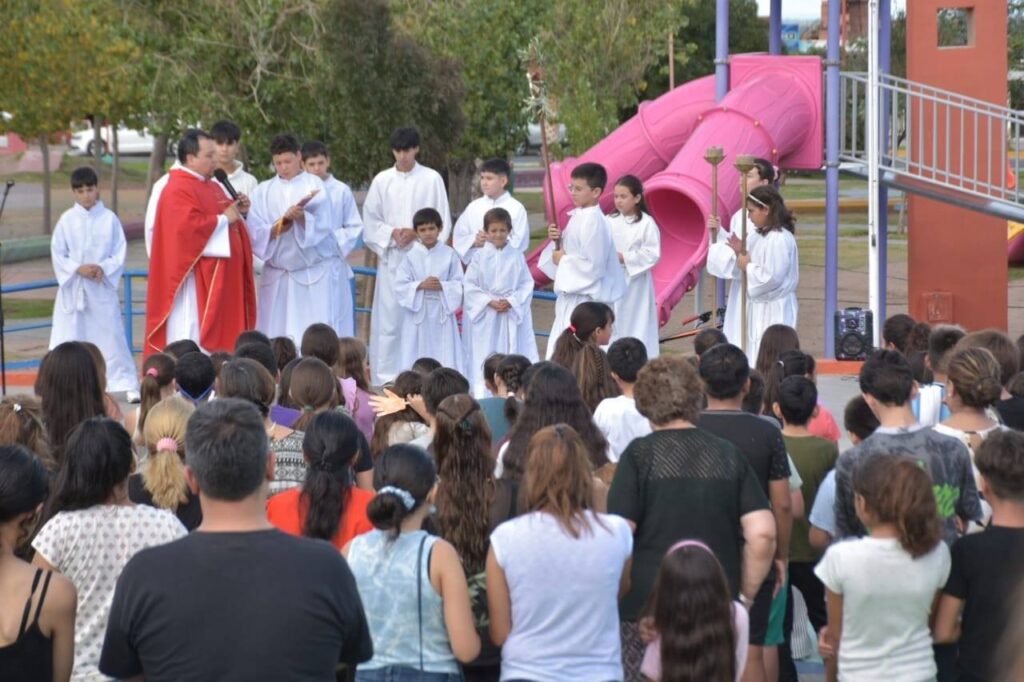 La celebración católica, con gran número de vecinos y vecinas que acompañaron, luego se trasladó a la iglesia María Reina de la Paz donde se celebró la Santa Misa.
