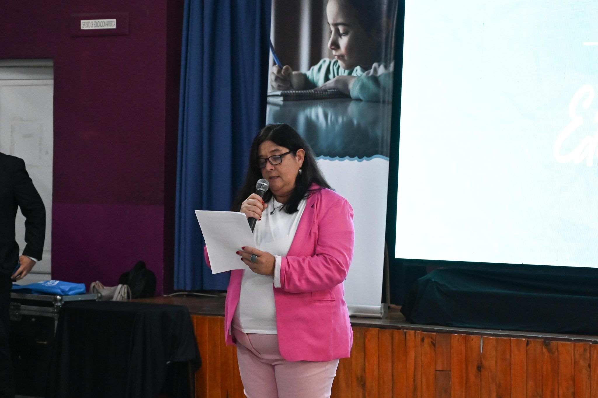 Luego, la directora de Innovación en Desarrollo Humano, Marcela Cadelago, detalló el concepto de ‘Desafi.a 2026’. “Su propósito es invitar a los jóvenes a observar su escuela, su barrio, su comunidad. A reconocer problemáticas reales de su entorno y transformarlas en soluciones creativas mediante el uso de la inteligencia artificial. Los estudiantes podrán inscribirse, trabajar en equipo, acceder a los desafíos y presentar sus proyectos de manera clara, guiada y accesible a lo largo del proceso, acompañados por sus docentes, que serán guías o tutores los estudiantes para diseñar propuestas innovadoras que den respuesta a necesidades concretas de su realidad. Esta iniciativa busca fortalecer habilidades fundamentales para el presente y el futuro: investigar, analizar la información, desarrollar el pensamiento crítico, la creatividad el trabajo en equipo y la capacidad de resolver problemas reales“.