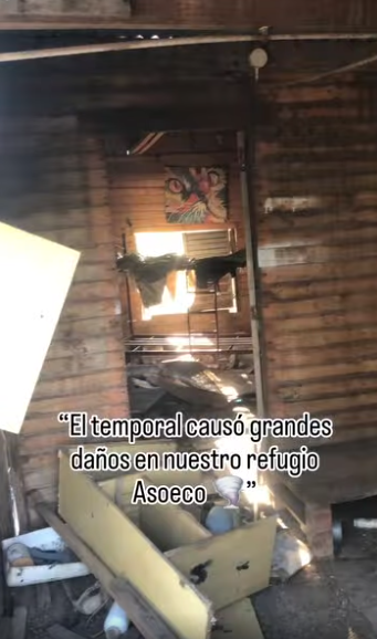 Un fuerte temporal provocó importantes destrozos en el refugio de la organización ASOECO, afectando gran parte de las instalaciones donde se resguardan animales abandonados, en proceso de recuperación y de tratamientos ya que muchos están lastimados o vulnerables.