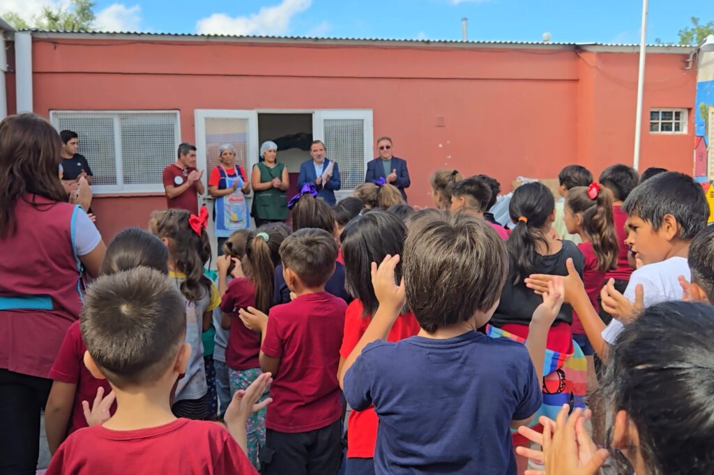 Tras el sonido de la campana, los alumnos del Primario y Secundario formaron en el patio junto a los más pequeños para recibir sus kits. Allí, Giraudo leyó la carta enviada por el Gobernador, quien expresó: “Los invito a abrazar con entusiasmo cada día de aprendizaje. Sepan que cada esfuerzo, cada pregunta y cada curiosidad que exploren será un paso más hacia su futuro. Ustedes son el corazón de nuestra comunidad educativa”.