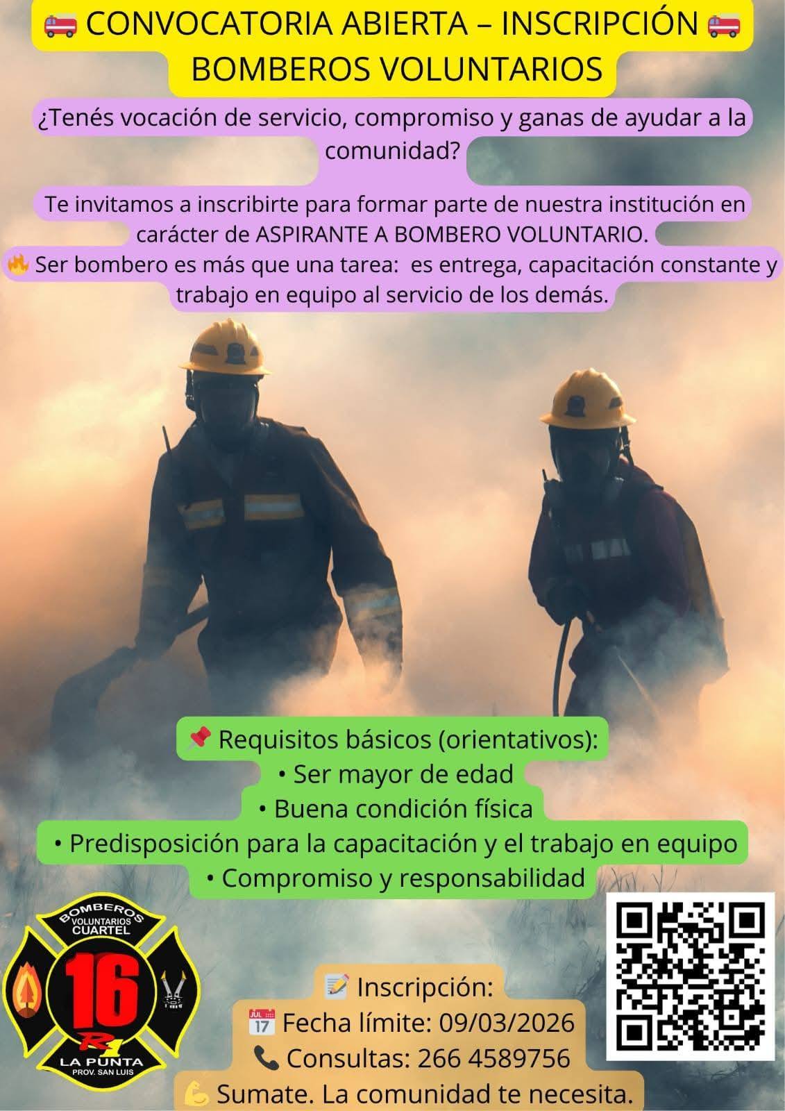 Si tenés vocación de servicio, compromiso y ganas de ayudar a la comunidad, desde el Cuartel 16 de La Punta, invitan a inscribirse para formar parte de dicha institución.