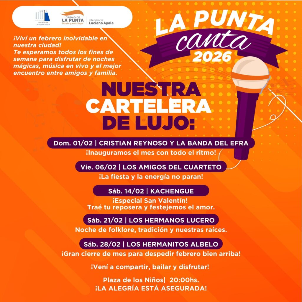 Durante todo febrero, la ciudad de La Punta se llena de música y encuentro con la llegada de La Punta Canta 2026, un ciclo de shows en vivo pensado para disfrutar todos los fines de semana al aire libre, en familia y con amigos. Artistas locales en escena, noches cálidas y un clima ideal para compartir, bailar y celebrar serán los protagonistas de cada jornada.