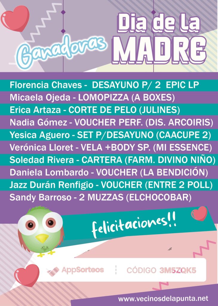 ganadoras del sorteo. Y gracias por sumarse a Vecinos De La Punta contando esas lindas anécdotas con mamá💝.