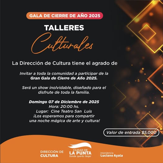 La Dirección de Cultura del municipio de La Punta tiene el agrado de invitar a toda la comunidad a participar de la Gran Gala de Cierre de Año 2025.