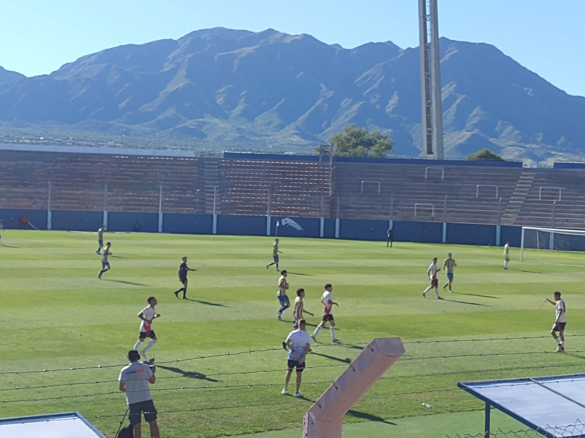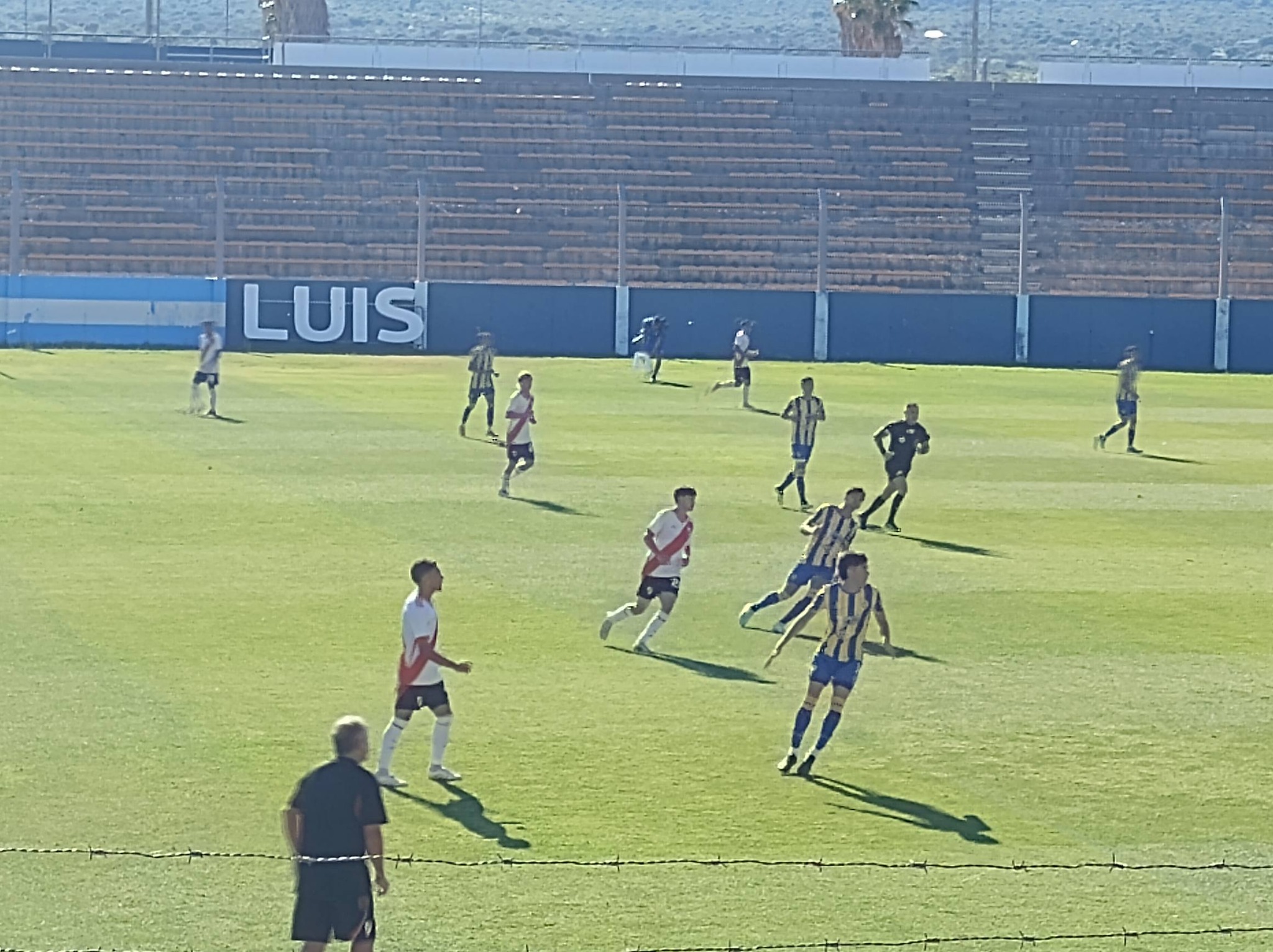 Arrancó el primer partido de los amistosos que juegan esta mañana en el Estadio Juan Gilberto Funes, los juveniles de River Plate y los combinados de San Luis.