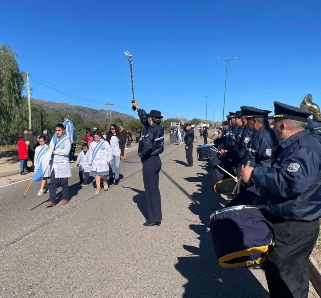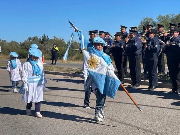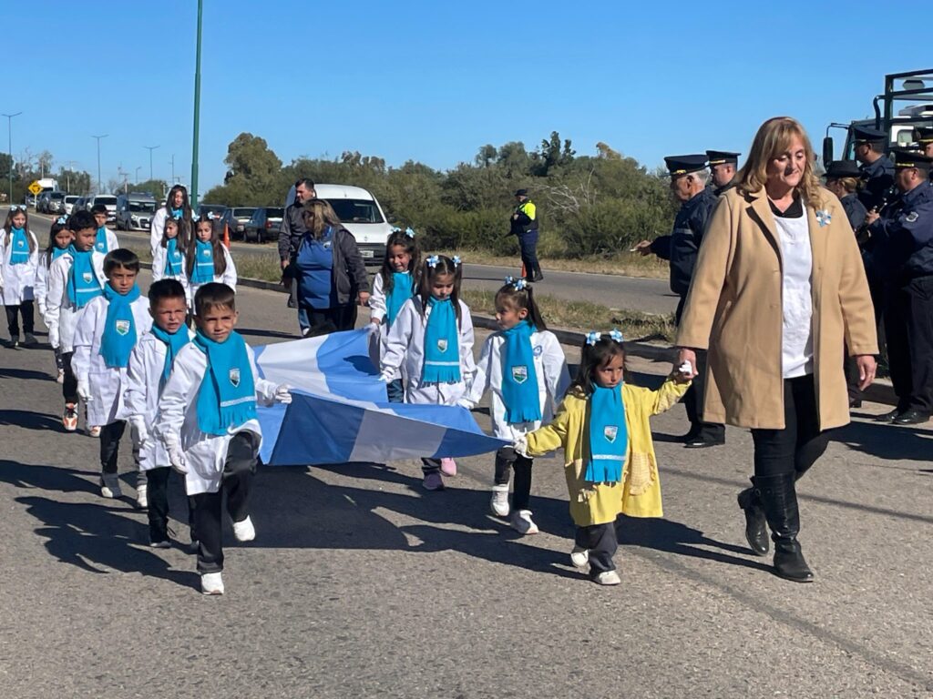 Además de la escuela anfitriona desfilaron alumnos de los centros educativos N°84 ‘Dalmiro Santiago Adaro’, N°86 ‘José Lucas Ortiz’, N°166 ‘Gobernador Narciso Gutiérrez’, N°380 ‘Granadero Valentín Domínguez’, N°25 ‘Justo José de Urquiza’ y la Generativa Rural ‘Acordes Puntanos’.