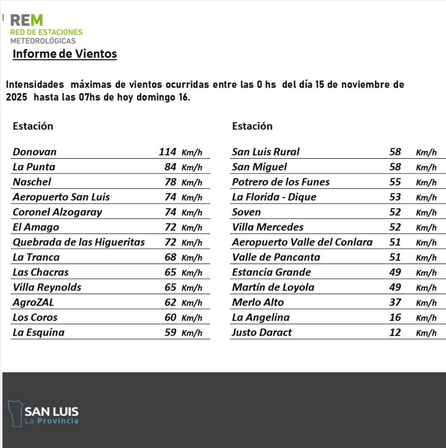 La Punta fue la segunda localidad en el registro de la Red de Estaciones Meteorológicas de la provincia, con vientos que superaron los 84 km/h.