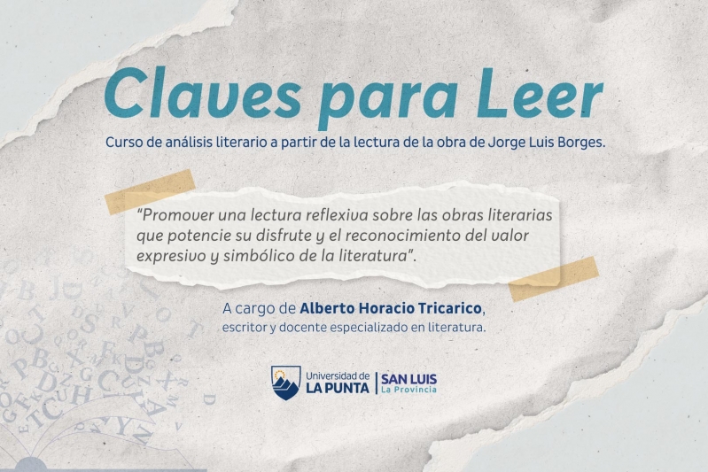 El área de Lectores, en conjunto con el área de Formación Extracurricular de la Secretaría de Extensión y Vinculación de la Universidad de La Punta, invita a participar del curso a cargo del docente especialista en literatura Alberto Tricarico.