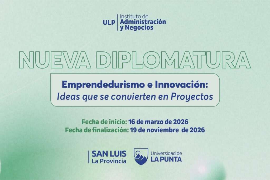 La Universidad de La Punta (ULP), a través del Instituto de Administración y Negocios (IAN), presenta la Diplomatura en ‘Emprendedurismo e Innovación: Ideas que se convierten en Proyectos’. La propuesta académica, a distancia, está pensada para quienes tienen una idea en la cabeza, ya sea un emprendimiento, un proyecto personal o profesional o simplemente necesitan el empuje y dirección para cambiar de trabajo. El objetivo es que en la diplomatura encuentren las herramientas necesarias para llevar ese cambio a la acción. Las clases comienzan en marzo.