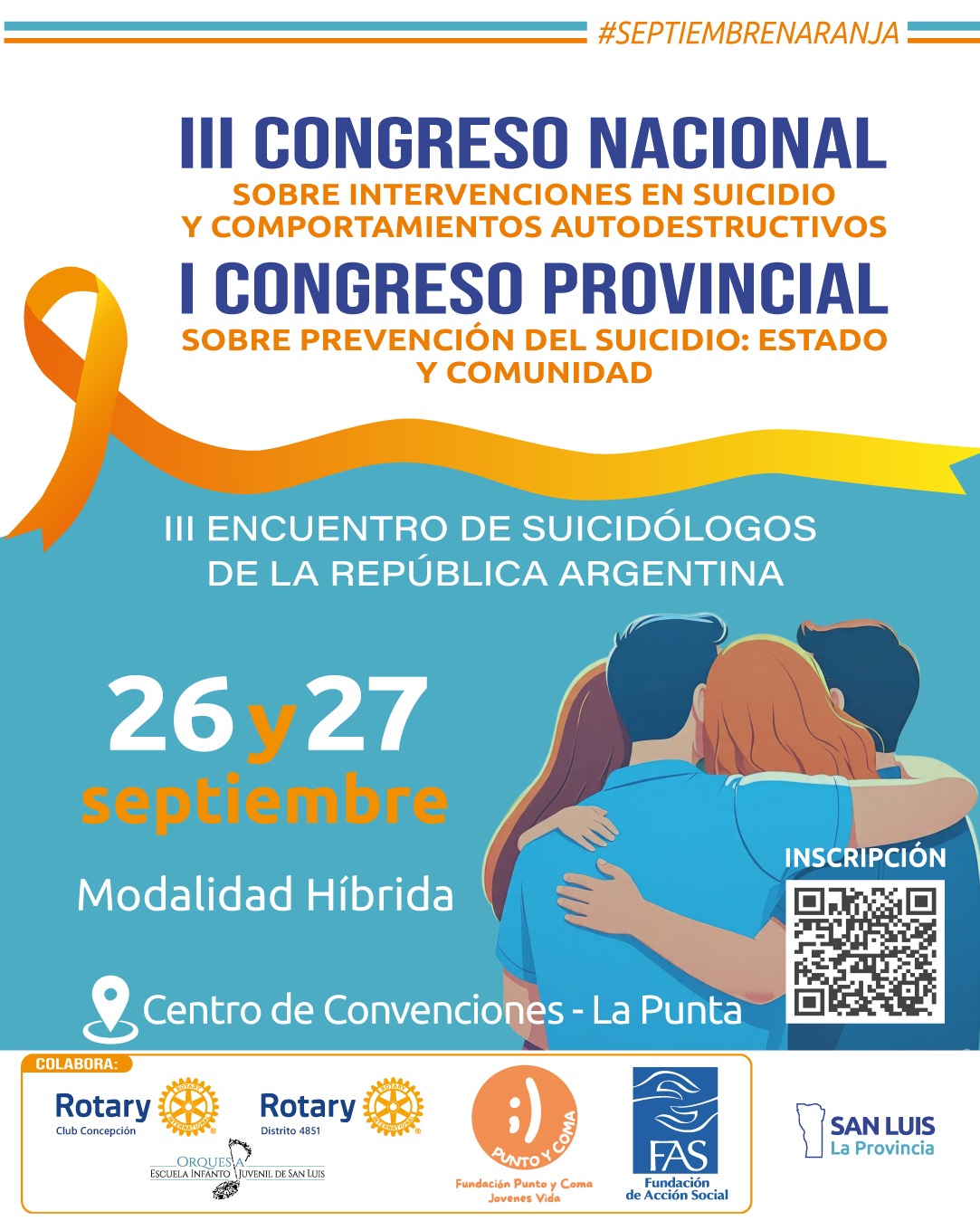 Con un gran número de inscriptos de todo el país y disertantes de primer nivel en la temática, este viernes y sábado se realizará el I Congreso Provincial sobre Prevención del Suicidio: Estado y Comunidad y el III Congreso Nacional sobre intervención en suicidio y comportamientos autodestructivos.