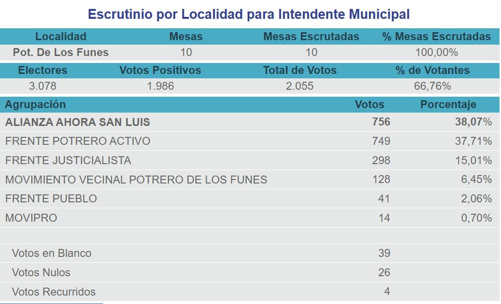 Será importante el escrutinio definitivo ante la exigua diferencia con el segundo candidato, solo 7 votos, y habiendo 4 votos recurridos y 26 nulos.