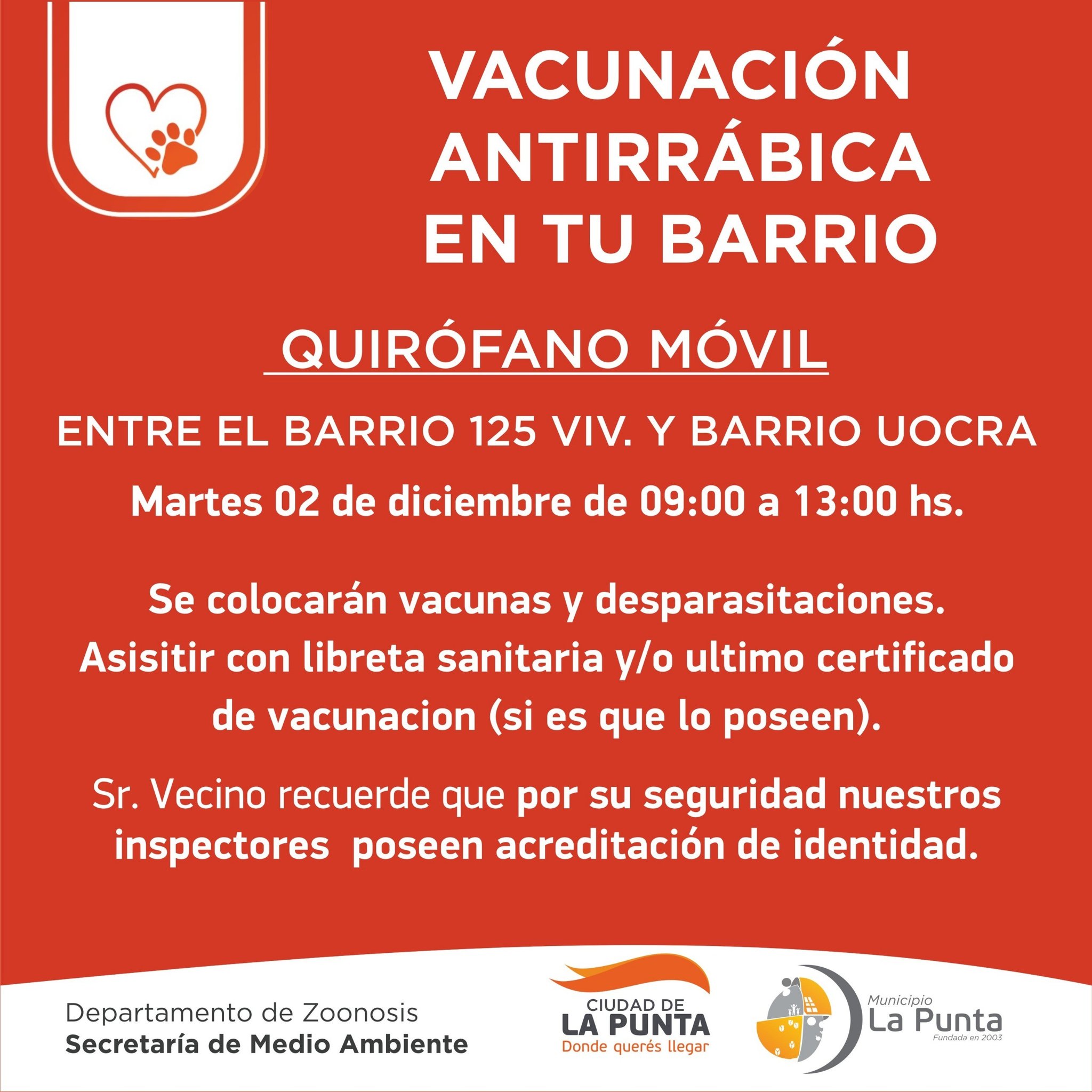 El quirófano móvil estará este martes 02 de diciembre entre los barrios 125 viv. UOCRA.
