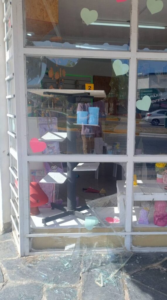 «Es más el daño que hacen rompiendo la vidriera que con lo que se llevan» lamentó el dueño del local situado frente a Plaza de los Niños y bulevar Tobar García, a pocos metros de la parroquia María Reina de la Paz.
