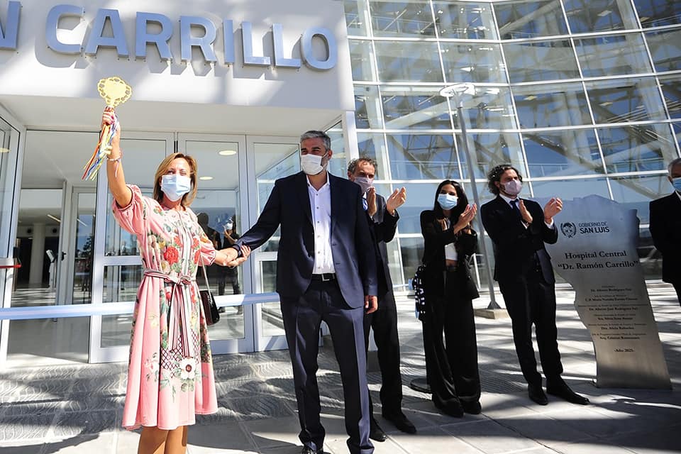 “Hoy simbólicamente y con emoción, vi como el ministro de Obras Públicas e Infraestructura, Alberto José Rodríguez Saá, le entregó la llave a la ministra de Salud, Silvia Sosa Araujo”, expresó el primer mandatario, y agregó: “Terminamos el cemento, ahora el Ministerio de Salud le tiene que poner alma al cemento, y eso tardará un período más; antes de un año se estarán inaugurando todos los servicios, porque las capacitaciones para usar la alta tecnología con la que está equipado este hospital, requiere un tiempo de capacitaciones”.
