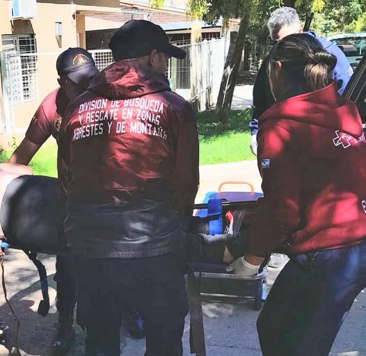 Al llegar al lugar, personal de Bomberos Voluntarios de Potrero de los Funes se encontraba auxiliando a una mujer de 43 años (con domicilio en la ciudad de La Punta), quien había sufrido una lesión durante una excursión en un sendero de la zona serrana. La mujer había sido inmovilizada por precaución y, debido a la complejidad del terreno, se coordinó un operativo para descenderla de manera segura hasta un sector accesible.